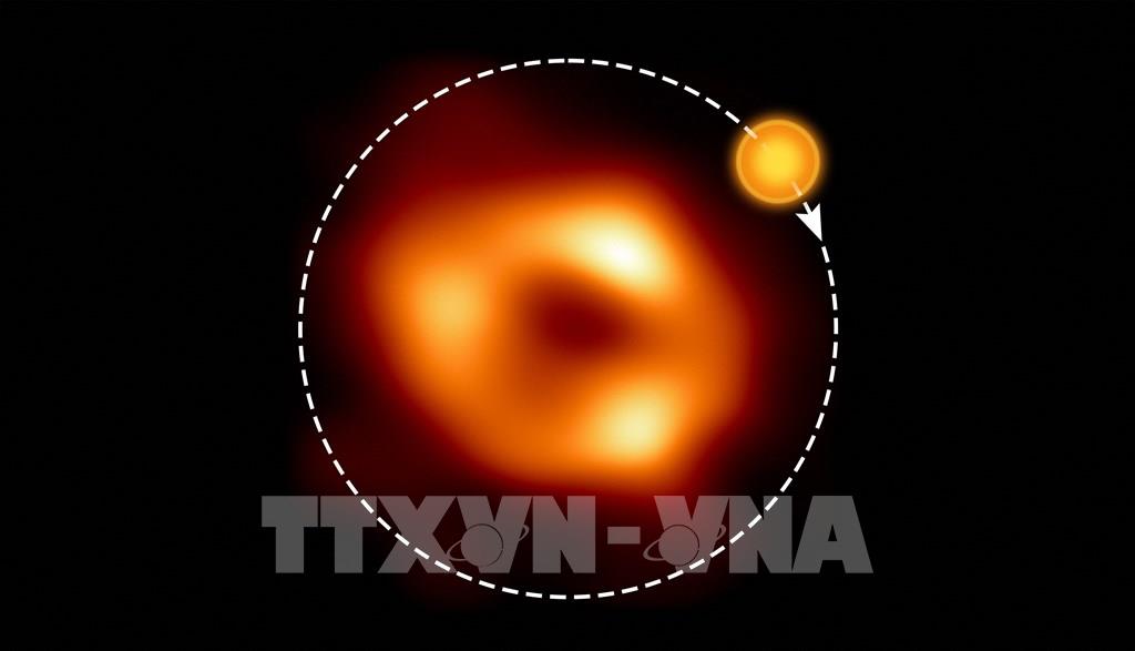 Theo nghiên cứu được công bố trên tạp chí "Astronomy and Astrophysics" ngày 22/9/2022, các nhà thiên văn học cho biết họ vừa phát hiện một bong bóng khí nóng quay quanh siêu hố đen Sagittarius A* ở trung tâm Dải Ngân hà với vận tốc chóng mặt. Bong bóng khí - còn được gọi là một điểm nóng - có quỹ đạo tương tự như quỹ đạo của sao Thủy quay xung quanh Mặt Trời. Trong ảnh: Hình ảnh mô phỏng quỹ đạo của bong bóng khí nóng quay quanh siêu hố đen Sagittarius A* ở trung tâm Dải Ngân hà. Ảnh: AFP/ TTXVN