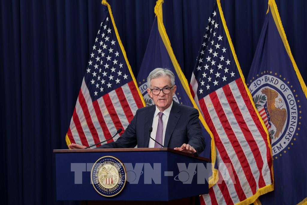 Ngày 21/9/2022, Cục Dự trữ Liên bang Mỹ (Fed) đã công bố thêm một đợt tăng lãi suất mạnh nhằm hạ nhiệt lạm phát, hiện ở mức cao nhất trong 4 thập kỷ qua. Theo đó, lãi suất cho vay cơ bản của FED được điều chỉnh tăng thêm 0,75 điểm %, dao động trong biên độ từ 3,0-3,25%. Trong ảnh: Chủ tịch Fed Jerome Powell phát biểu tại cuộc họp báo ở Washington, D.C., Mỹ, ngày 21/9/2022. Ảnh: THX/ TTXVN