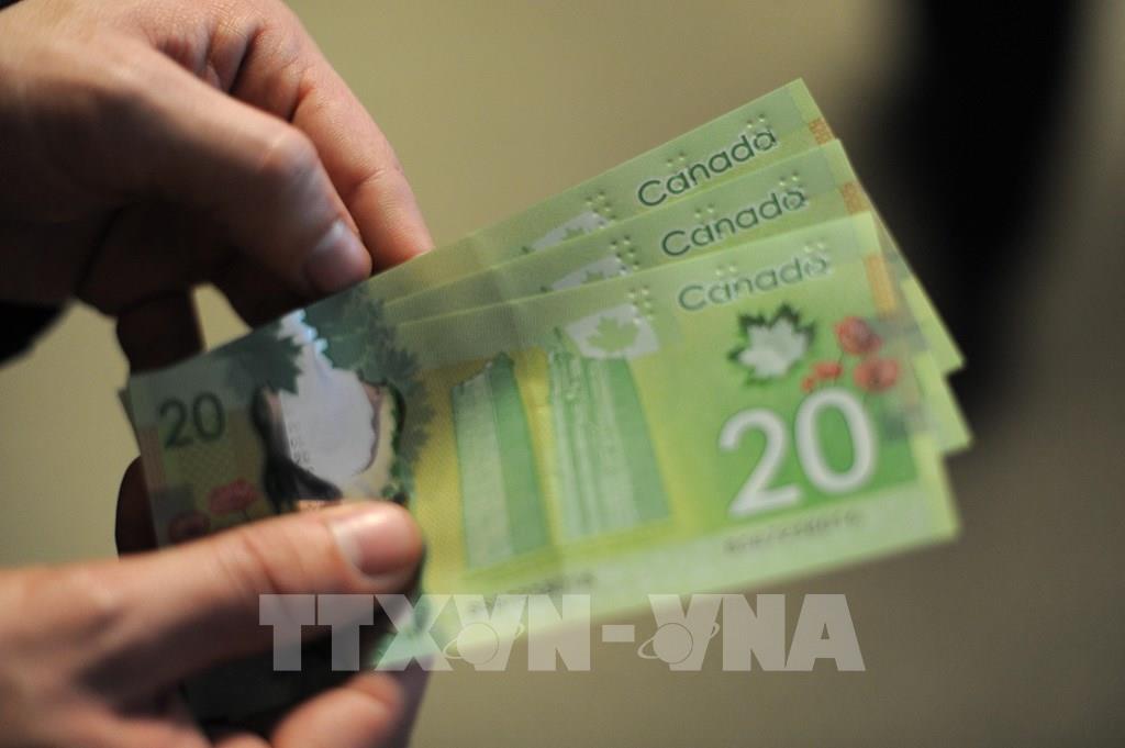 Tỷ giá của nhiều đồng tiền lớn so với đồng USD đã đồng loạt giảm xuống mức thấp nhất trong nhiều năm sau khi Cục Dự trữ liên bang Mỹ (Fed) quyết định tăng lãi suất ở mức 0,75 điểm % ngày 21/9/2022. Trong ảnh (tư liệu): Đồng tiền mệnh giá 20 đô la Canada. Ảnh: AFP/ TTXVN