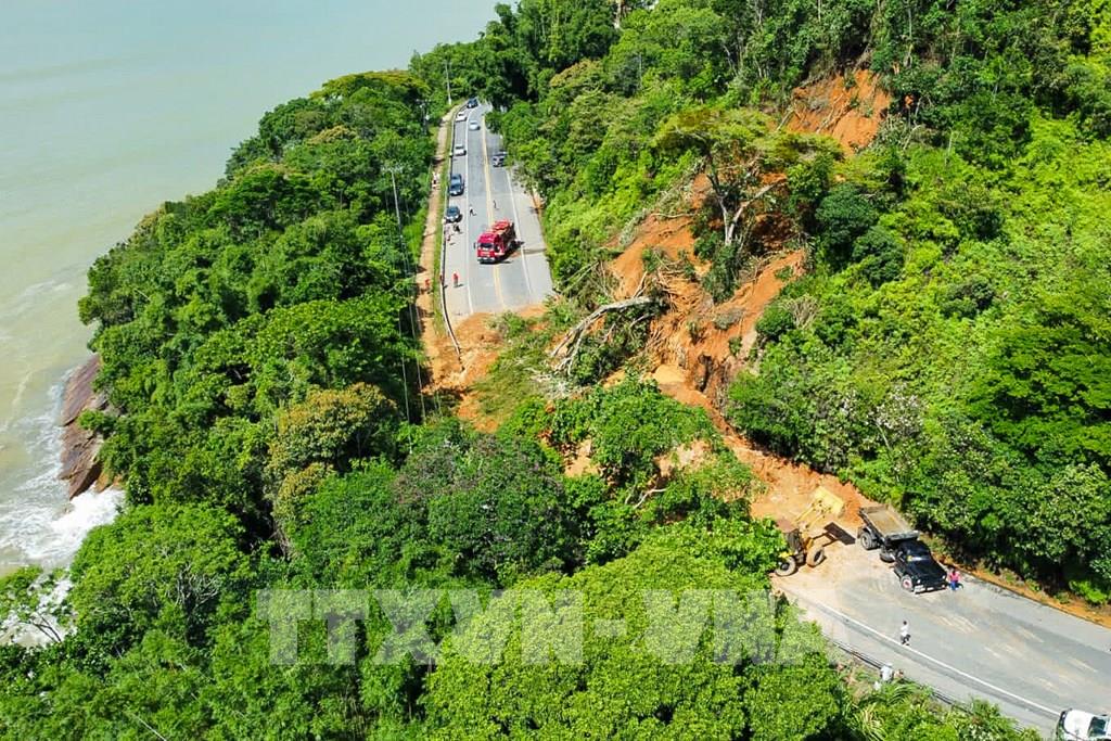 Nhà chức trách Brazil ngày 22/2/2023 cho biết lũ lụt và lở đất do mưa lớn ở khu vực duyên hải Đông Nam nước này đã cướp đi sinh mạng của ít nhất 48 người, cuốn trôi nhiều nhà cửa, trong khi công tác tìm kiếm ít nhất 38 người mất tích đã bước sang ngày thứ 4. Ảnh: Lở đất do mưa lớn khiến giao thông đình trệ trên tuyến cao tốc SP-55 ở Sao Paulo, Brazil. AFP/TTXVN