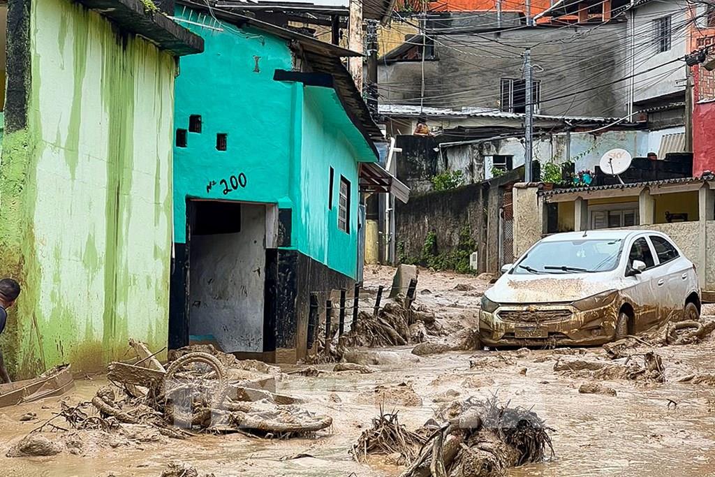 Nhà chức trách Brazil ngày 22/2/2023 cho biết lũ lụt và lở đất do mưa lớn ở khu vực duyên hải Đông Nam nước này đã cướp đi sinh mạng của ít nhất 48 người, cuốn trôi nhiều nhà cửa, trong khi công tác tìm kiếm ít nhất 38 người mất tích đã bước sang ngày thứ 4. Ảnh: Cảnh tàn phá do ngập lụt và lở đất ở thị trấn Sao Sebastiao, bang Sao Paulo, Brazil. AFP/TTXVN