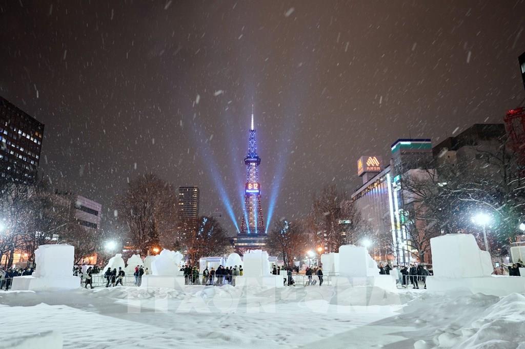 Lễ hội Tuyết thường niên Sapporo đã khai mạc ngày 4/2/2023 tại thành phố cùng tên, thủ phủ của tỉnh Hokkaido (Nhật Bản), đánh dấu lần đầu tiên trở lại sau 3 năm đại dịch COVID-19 hoành hành, đón khách tham quan đến chiêm ngưỡng 160 tác phẩm điêu khắc bằng tuyết và băng. Ảnh: THX/TTXVN