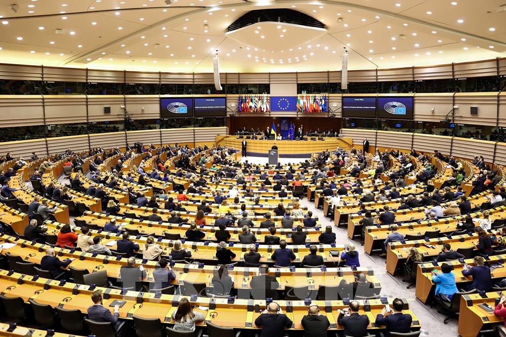Hội nghị thượng đỉnh đặc biệt của Liên minh châu Âu (EU) diễn ra ngày 9-10/2 tại thủ đô Brussels của Bỉ thảo luận về vấn đề Ukraine, phản ứng của châu Âu trước các chương trình trợ cấp của Mỹ và vấn đề di cư. Ảnh: Quang cảnh hội nghị ngày 9/2/2023. Ảnh: AFP/TTXVN