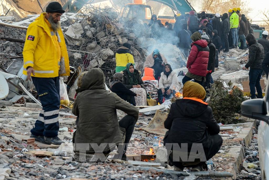 Ngày 6/2/2023, trận động đất kinh hoàng độ lớn 7,8 đã xảy ra ở khu vực biên giới giữa Thổ Nhĩ Kỳ và Syria. Tính đến 4h03' ngày 10/2 (giờ Việt Nam), số người thiệt mạng trong thảm họa động đất này đã lên tới hơn 21.000 người, trong khi hàng nghìn ngôi nhà ở hai bên biên giới bị phá hủy. Ảnh: Người dân đốt lửa sưởi ấm khi mất nhà cửa sau trận động đất tại Adiyaman, Thổ Nhĩ Kỳ ngày 9/2/2023. Ảnh: AFP/TTXVN