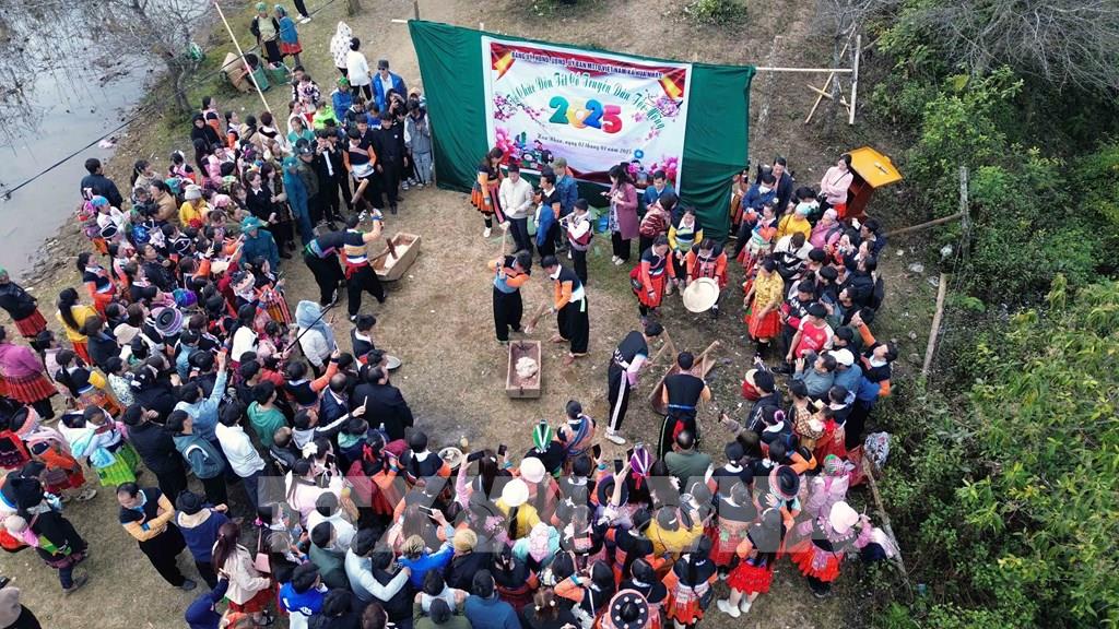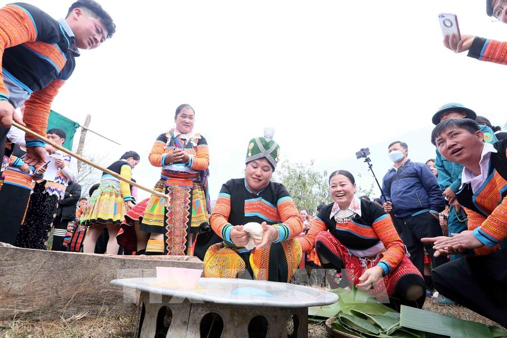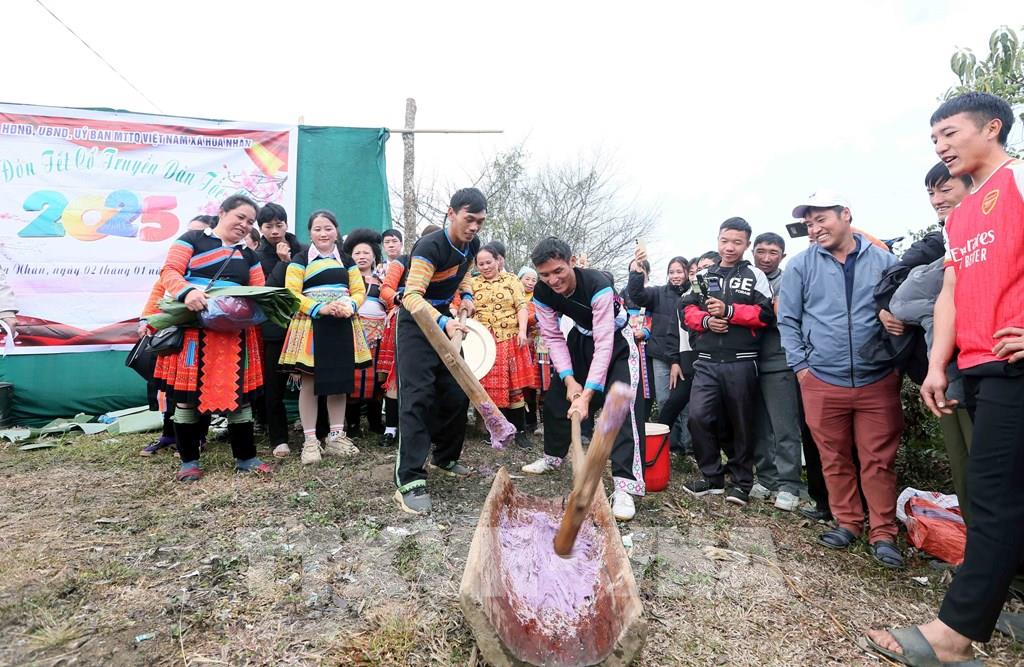 Thi giã bánh dày trong ngày Tết cổ truyền của Đồng bào dân tộc Mông ở xã Hua Nhàn, huyện Bắc Yên. Ảnh: Quang Quyết - TTXVN
