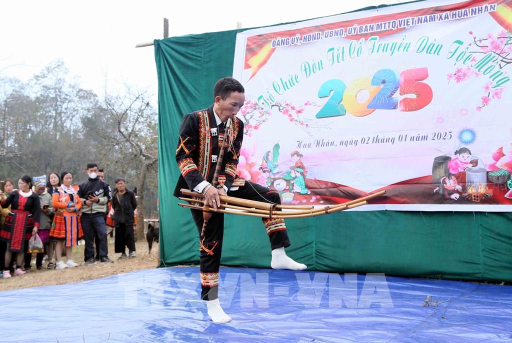 Múa khèn trong ngày Tết cổ truyền của Đồng bào dân tộc Mông ở xã Hua Nhàn, huyện Bắc Yên. Ảnh: Quang Quyết - TTXVN