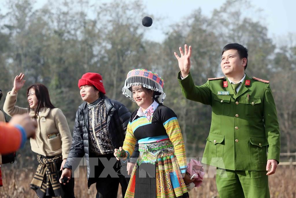 Tham gia ném Pao trong ngày Tết cổ truyền của Đồng bào dân tộc Mông ở xã Hua Nhàn, huyện Bắc Yên. Ảnh: Quang Quyết - TTXVN