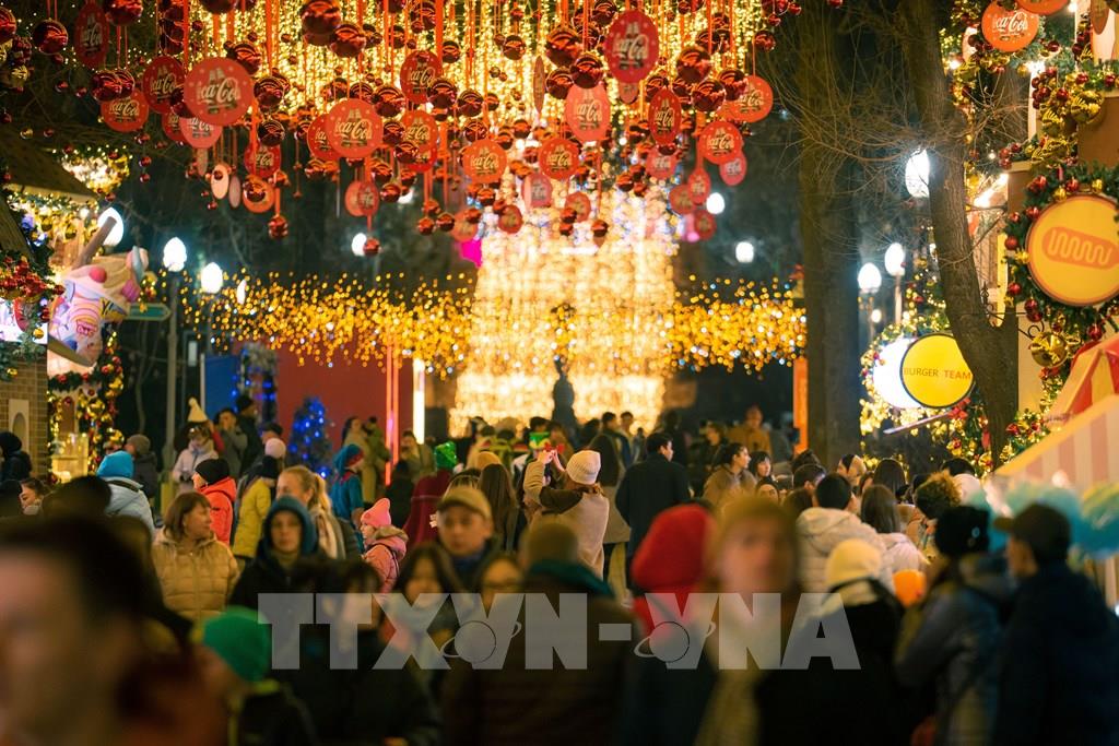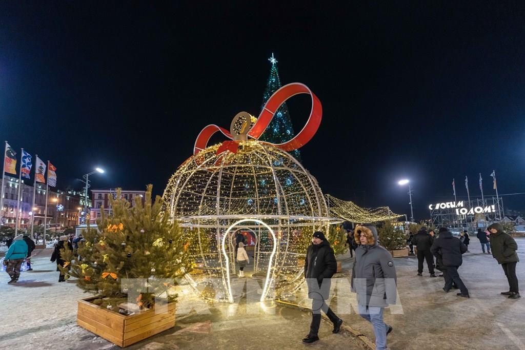 Đường phố được trang hoàng rực rỡ đón Năm mới tại Vladivostok, Nga ngày 31/12/2022. Ảnh: THX/ TTXVN