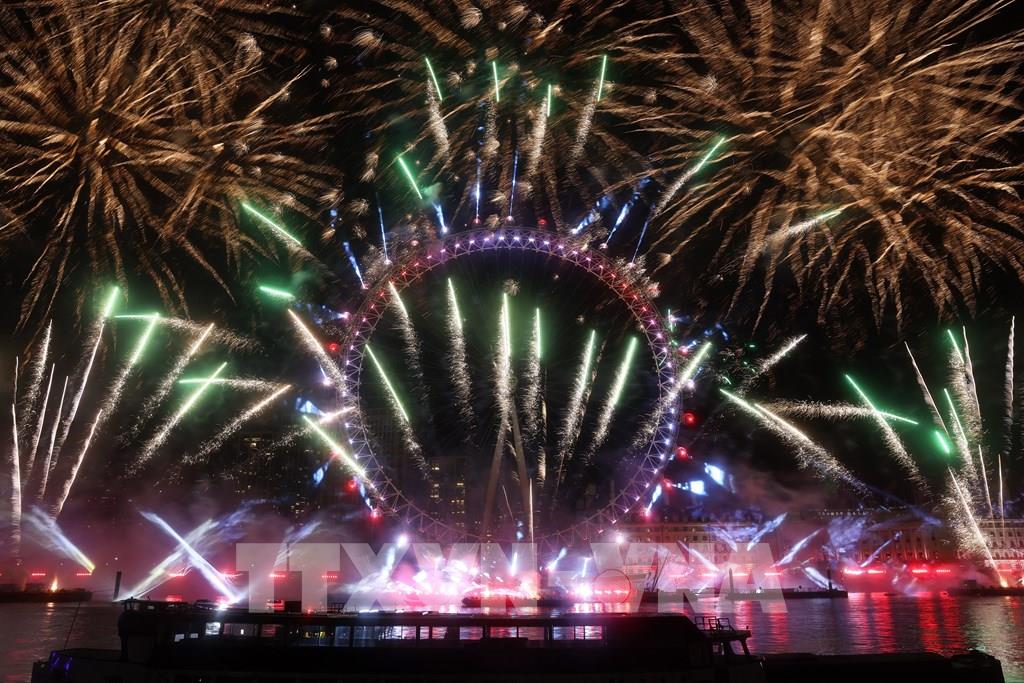 Màn trình diễn pháo hoa đón Năm mới tại London, Anh, ngày 1/1/2023. Ảnh: AFP/ TTXVN