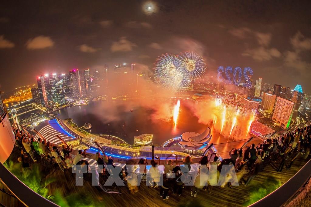 Màn hình diễn pháo hoa chào Năm mới tại Singapore ngày 1/1/2023. Ảnh: THX/ TTXVN