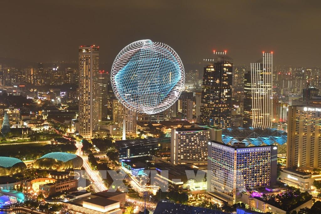 Màn hình diễn ánh sáng chào Năm mới tại Singapore ngày 31/12/2022. Ảnh: THX/ TTXVN