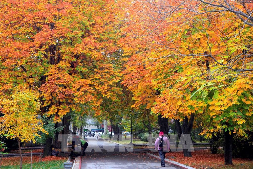 Lá thu nhuộm vàng công viên tại Bishkek, Kyrgyzstan, ngày 24/10/2022. Ảnh: THX/TTXVN