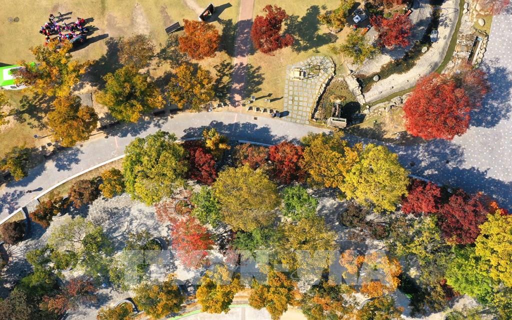 Những tán lá chuyển màu vàng và đỏ khi thu sang, tại Gokseong, tỉnh Nam Jeolla, Hàn Quốc, ngày 24/10/2022. Ảnh: Yonhap/ TTXVN