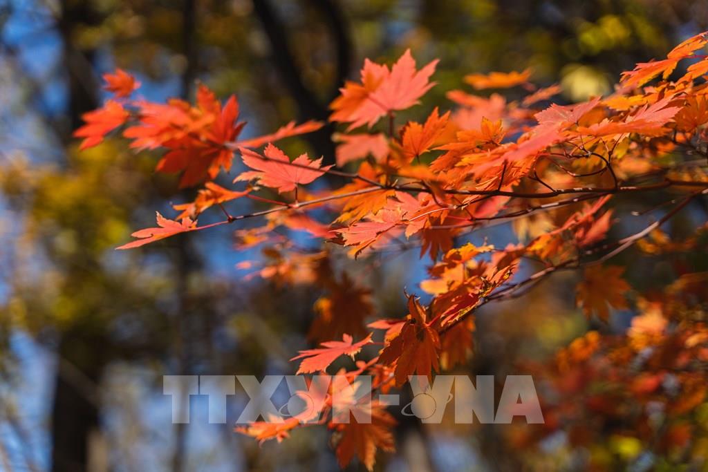 Những tán lá chuyển màu vàng và đỏ khi thu sang, tại Seoul, Hàn Quốc, ngày 22/10/2022. Ảnh: Yonhap/ TTXVN