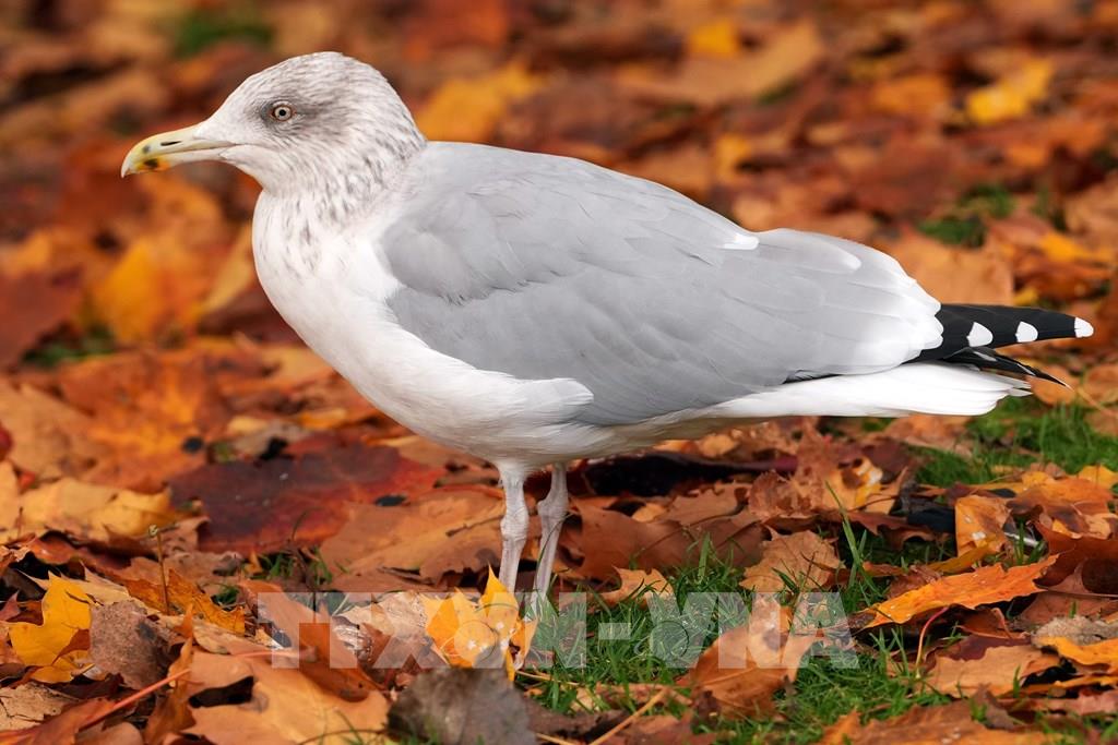 Chim mòng biển trên lá thu trong công viên ở Riga, Latvia, ngày 24/10/2022. Ảnh: THX/ TTXVN