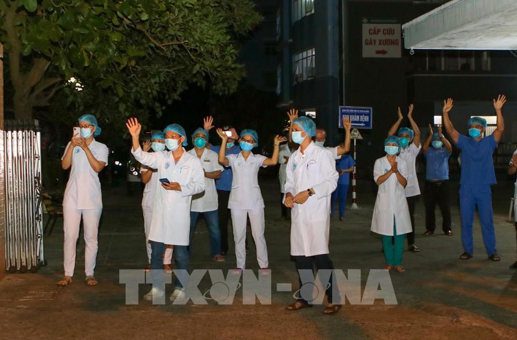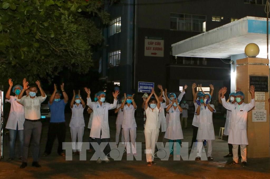 Niềm vui của các y bác sỹ Bệnh viện Chỉnh hình và Phục hồi chức năng Đà Nẵng sau khi lệnh phong tỏa được gỡ bỏ. Ảnh: Trần Lê Lâm - TTXVN