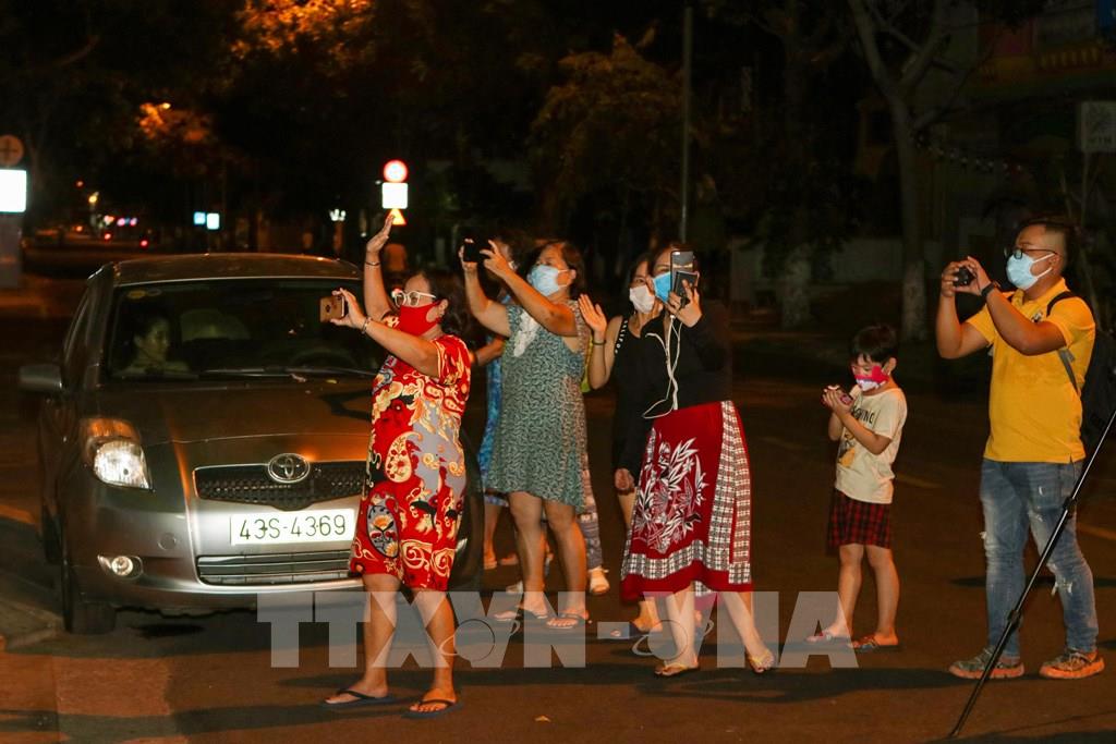 Người dân trong khu vực bị cách ly ghi lại những khoảnh khắc chung vui cùng y bác sỹ Bệnh viện Chỉnh hình và Phục hồi chức năng Đà Nẵng sau khi lệnh phong tỏa được gỡ bỏ. Ảnh: Trần Lê Lâm - TTXVN