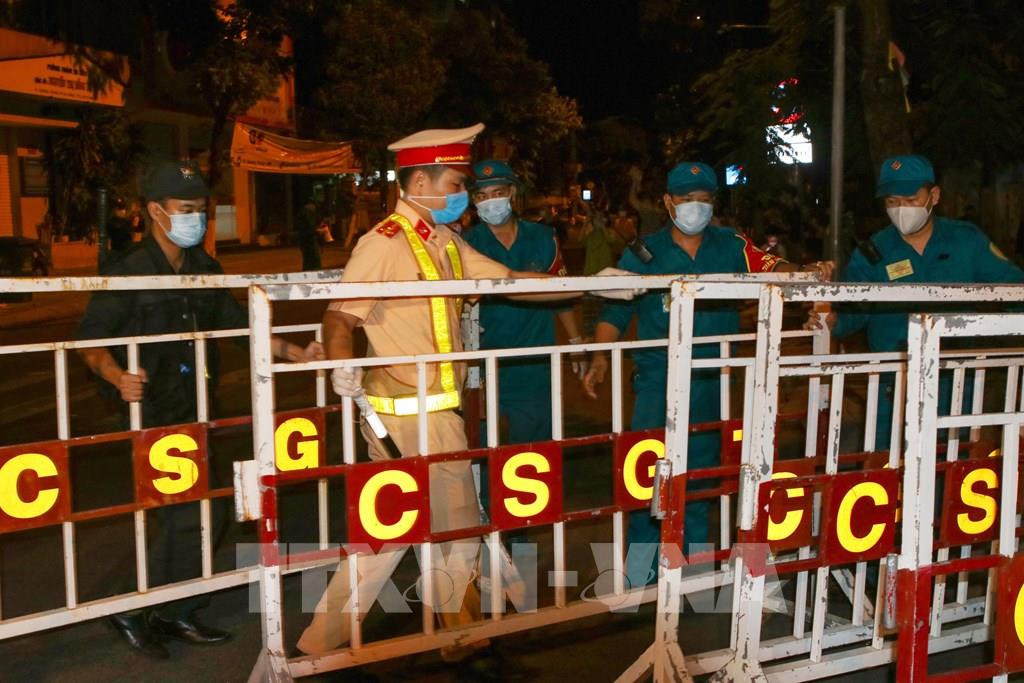 Lực lượng trực chốt thu dọn các rào chắn trên các tuyến đường sau khi được thông báo gỡ lệnh phong tỏa. Ảnh: Trần Lê Lâm - TTXVN