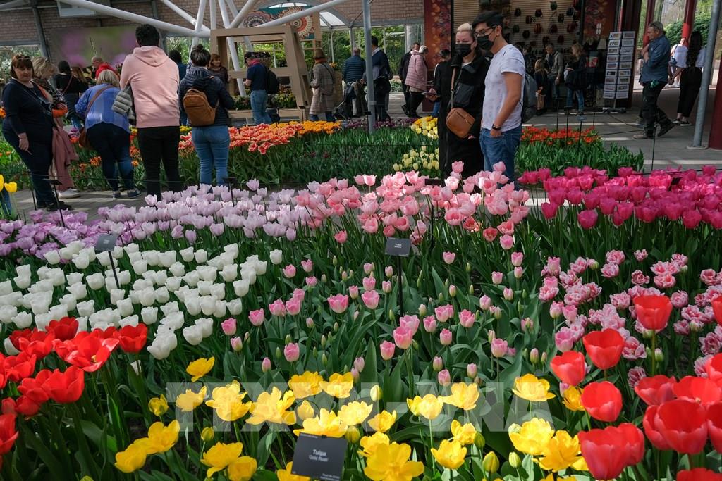 Màu sắc rực rỡ của hoa tulip, cũng như hoa thủy tiên vàng, hoa loa kèn, hoa hồng, hoa cẩm chướng và dạ lan hương, mang đến một trải nghiệm độc đáo. Ảnh: Hương Giang - TTXVN