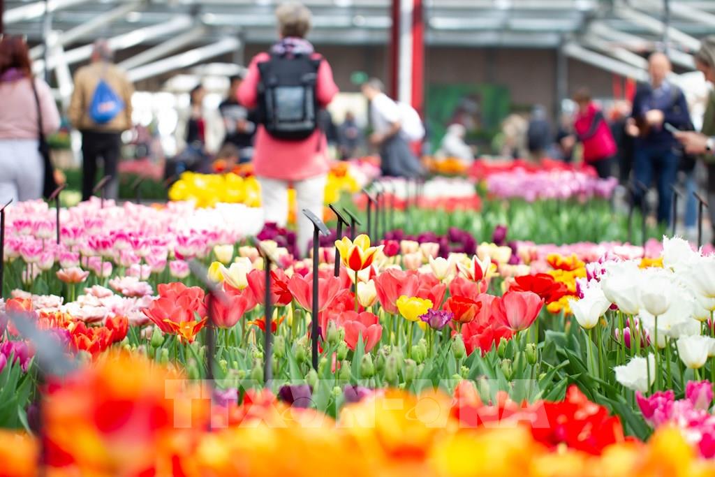 Du khách thăm vườn hoa Keukenhof ở Lisse, Hà Lan, ngày 26/3/2022. Ảnh: THX/ TTXVN