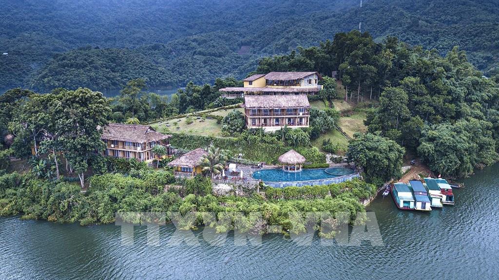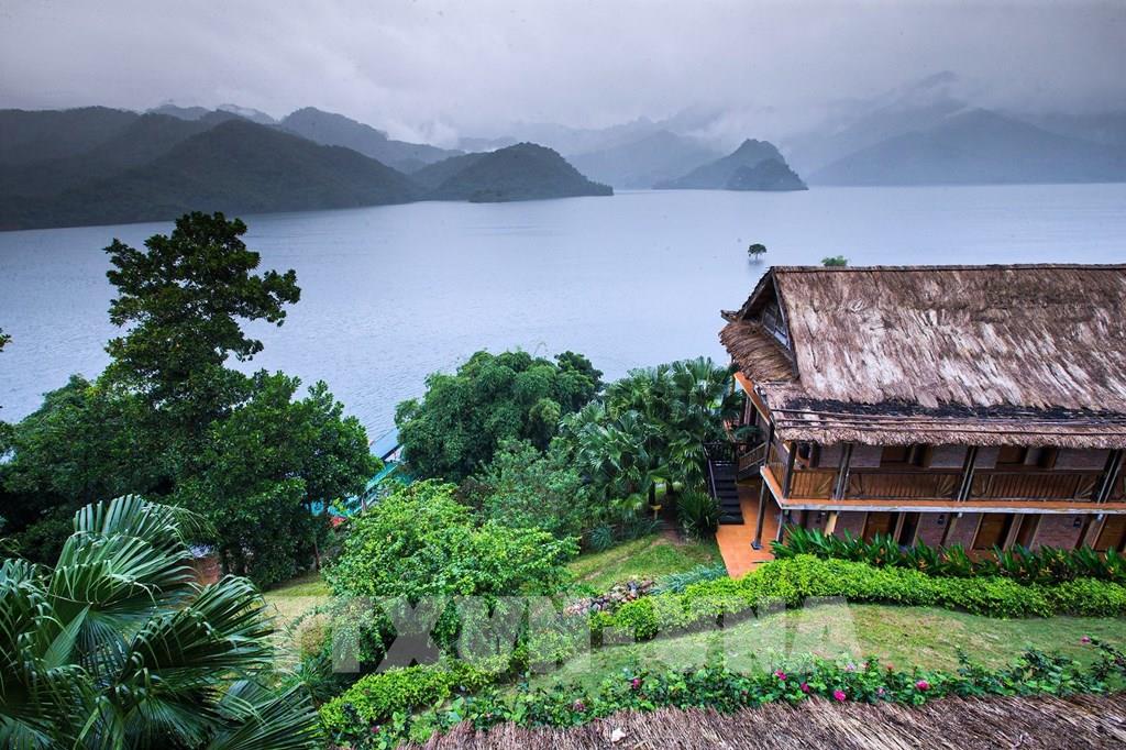 Khu nghỉ dưỡng cao cấp Mai Châu Hideaway nằm ngay bên dòng Đà Giang thơ mộng và hùng vĩ. Ảnh: Trọng Đạt - TTXVN