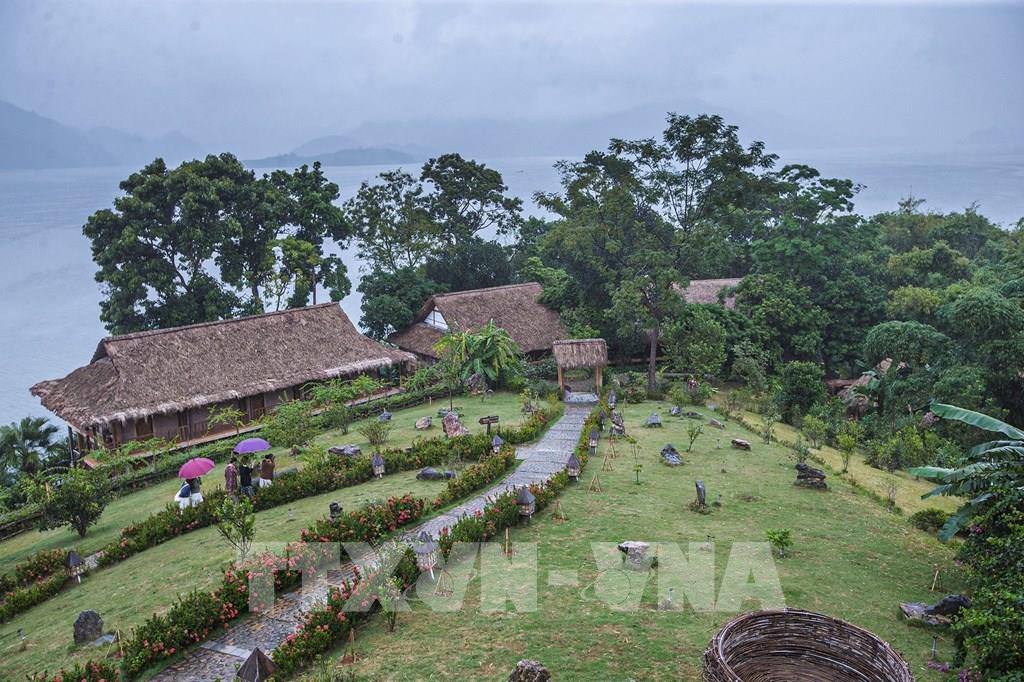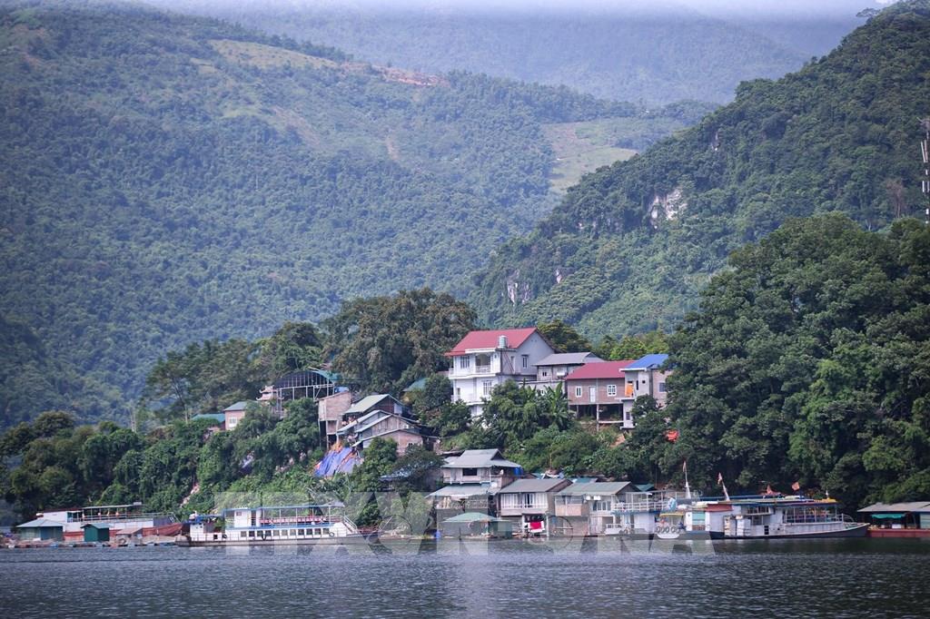Trên hành trình thưởng ngoạn trên sông Đà,du khác sẽ bắt gặp những xóm, làng nhỏ nằm ngay sát bên bờ sông với những kiến trúc đẹp và hiện đại. Ảnh: Trọng Đạt - TTXVN