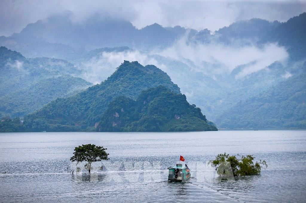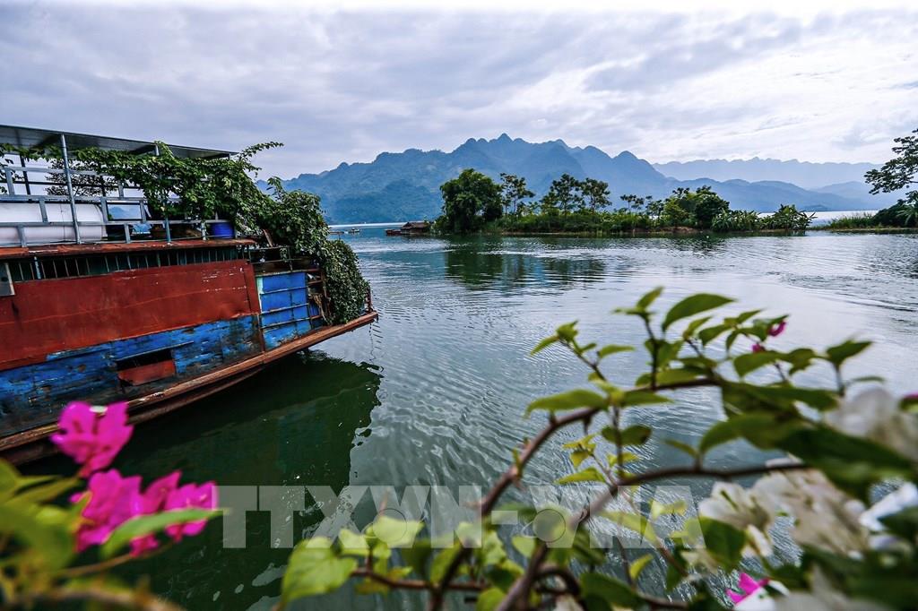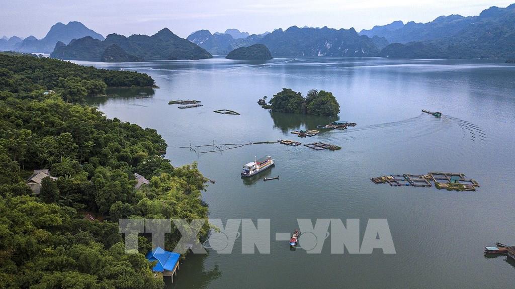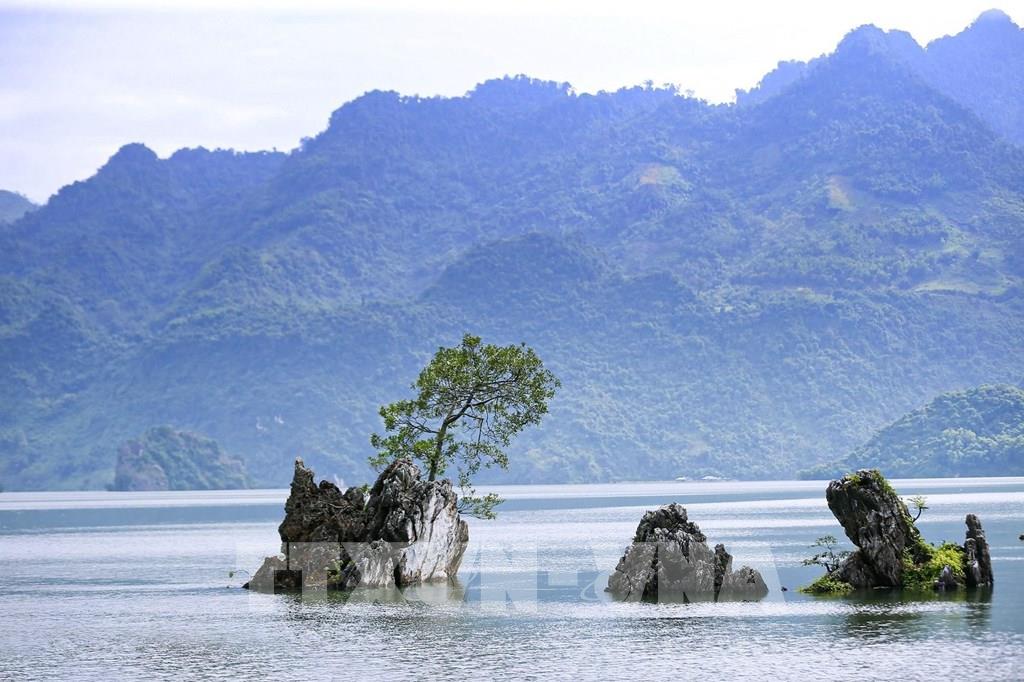 Cảnh quan hùng vĩ với núi non trùng điệp cùng các tiểu cảnh điểm xuyến nên thơ trên hồ Hòa Bình. Ảnh: Trọng Đạt - TTXVN