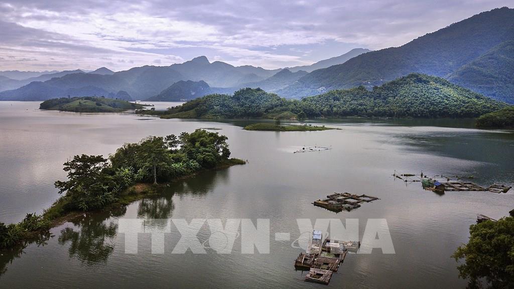 Một góc hồ thủy điện Hòa Bình với cảnh quan hùng vĩ và nên thơ. Ảnh: Trọng Đạt - TTXVN