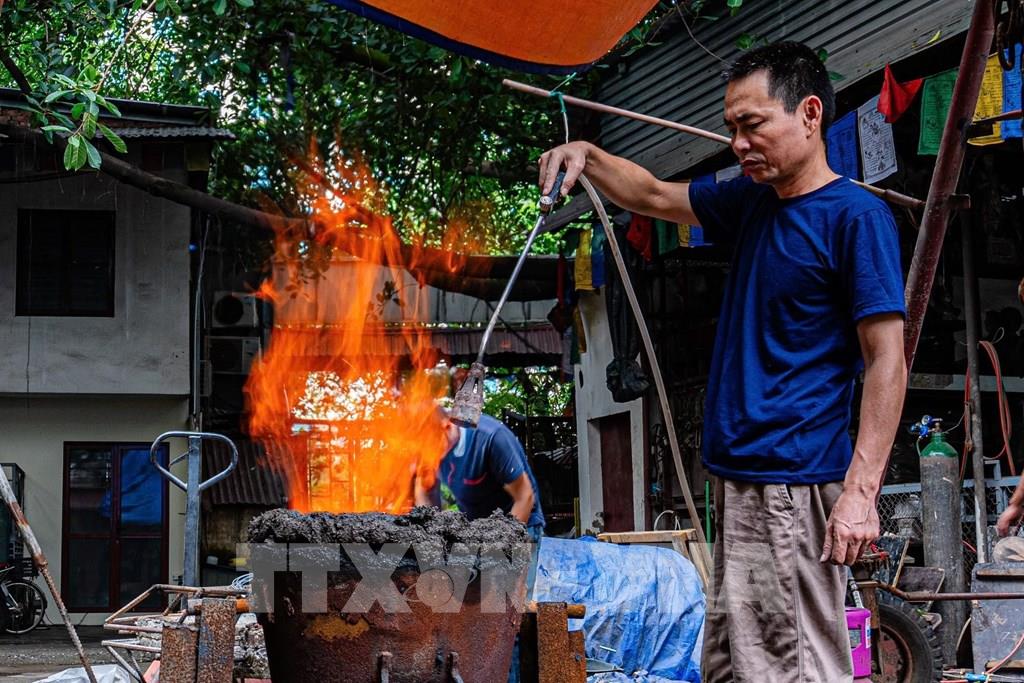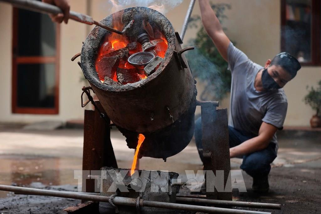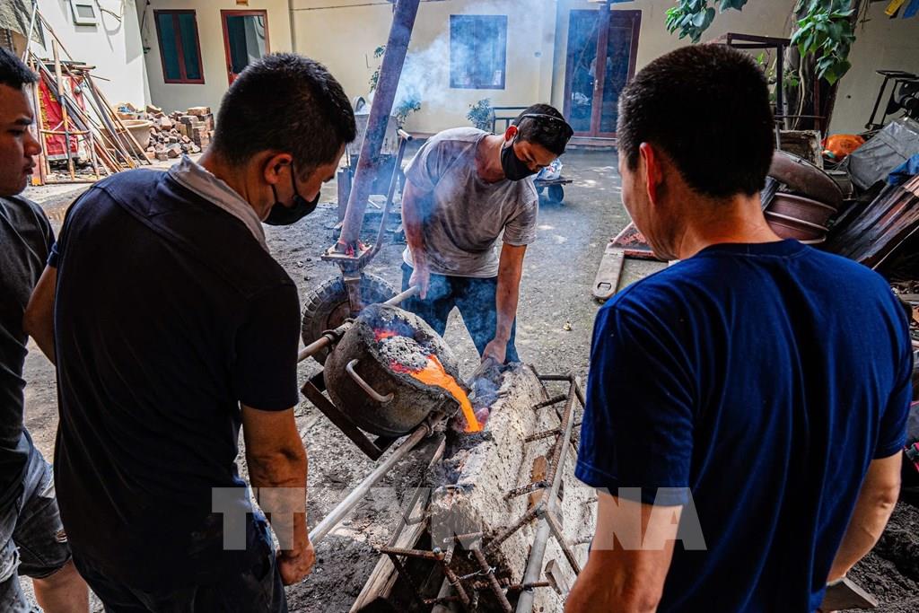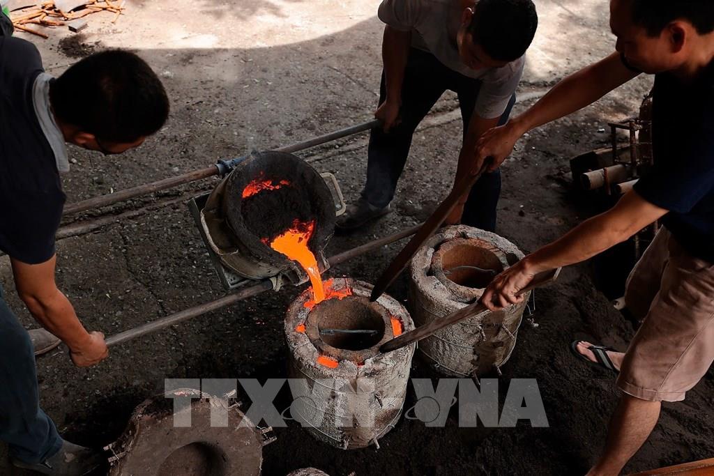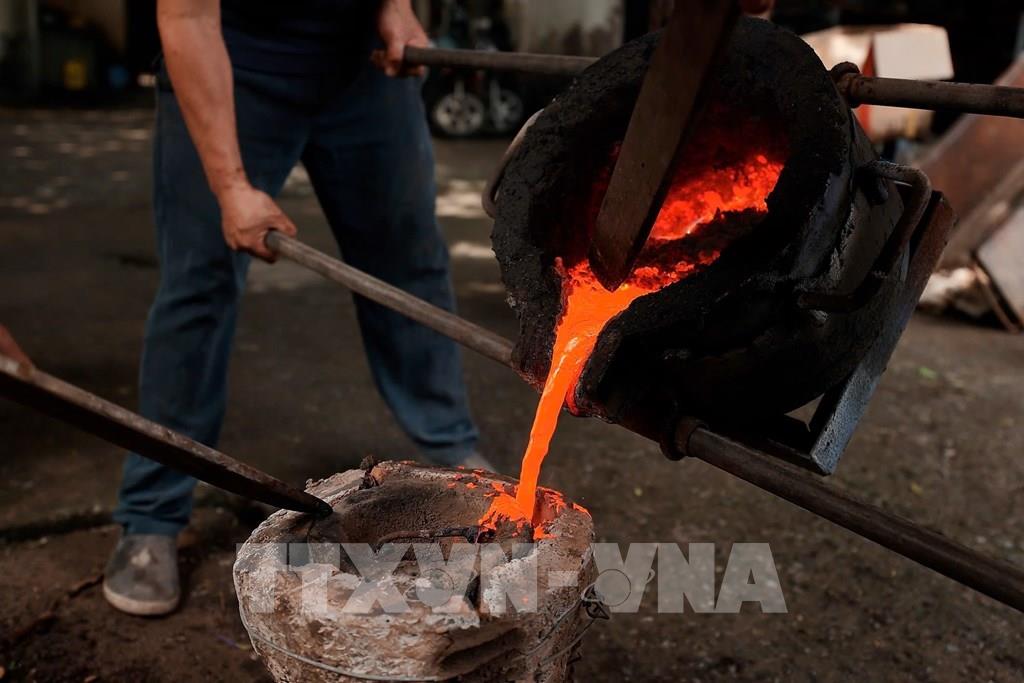 Đồng được nấu chảy và đổ vào khuôn. Ảnh: Minh Quyết - TTXVN
