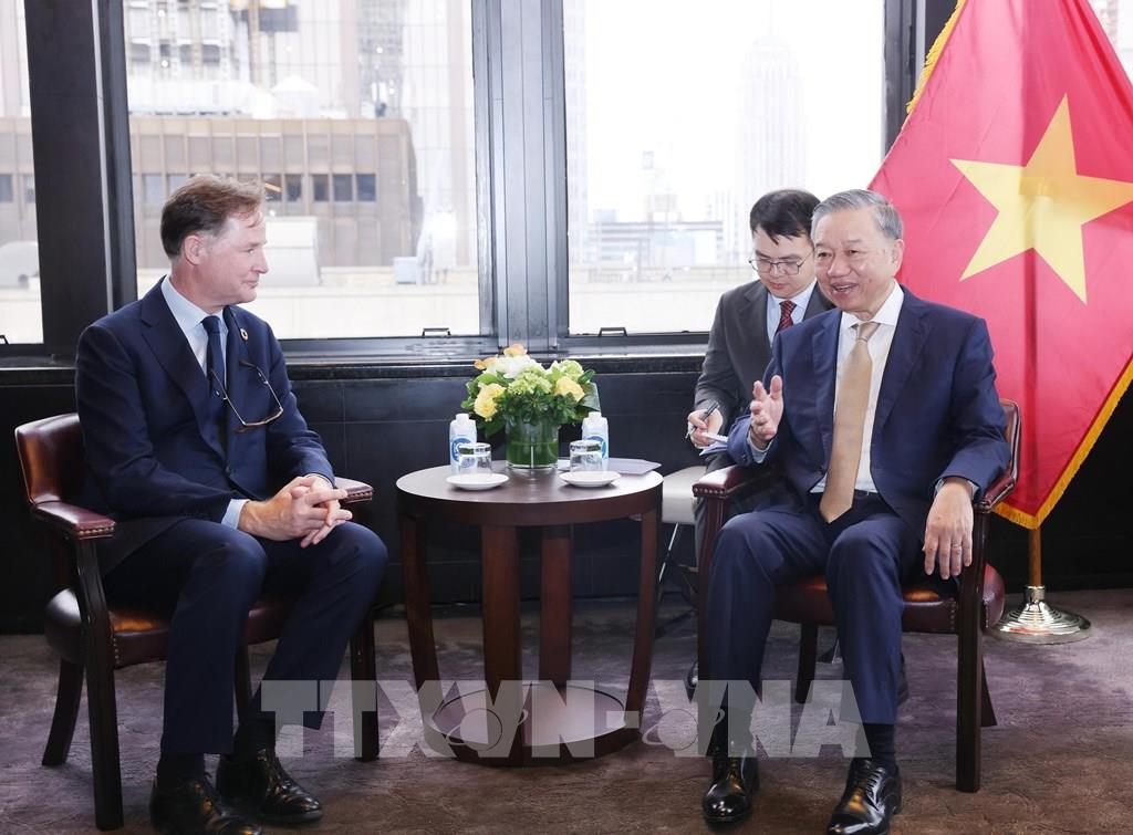 Tổng Bí thư, Chủ tịch nước Tô Lâm tiếp Chủ tịch phụ trách Đối ngoại Toàn cầu của Tập đoàn Meta, ông Nick Clegg. Ảnh: Lâm Khánh - TTXVN