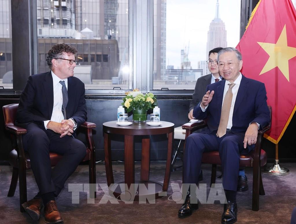 Tổng Bí thư, Chủ tịch nước Tô Lâm tiếp ông Jake Siewert, Giám đốc điều hành Quỹ đầu tư Warburg Pincus. Ảnh: Lâm Khánh - TTXVN