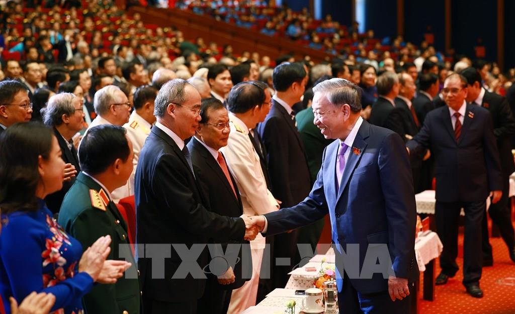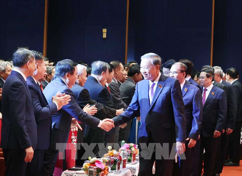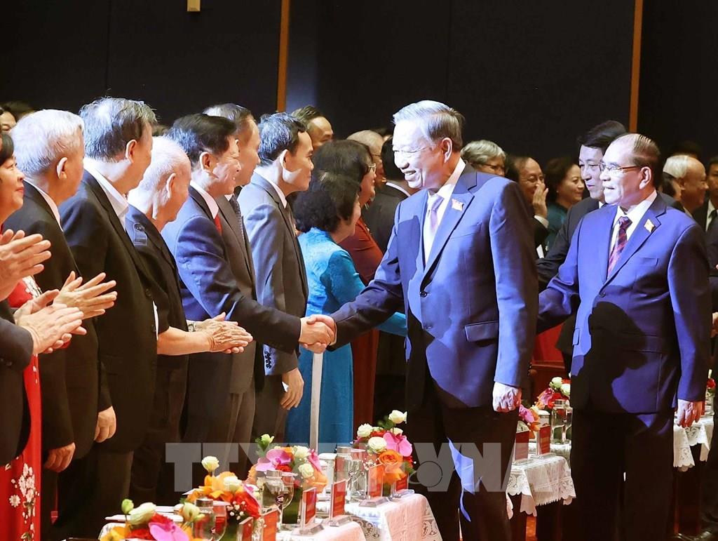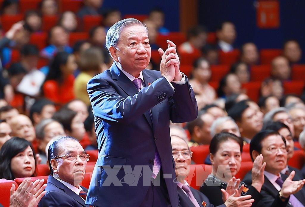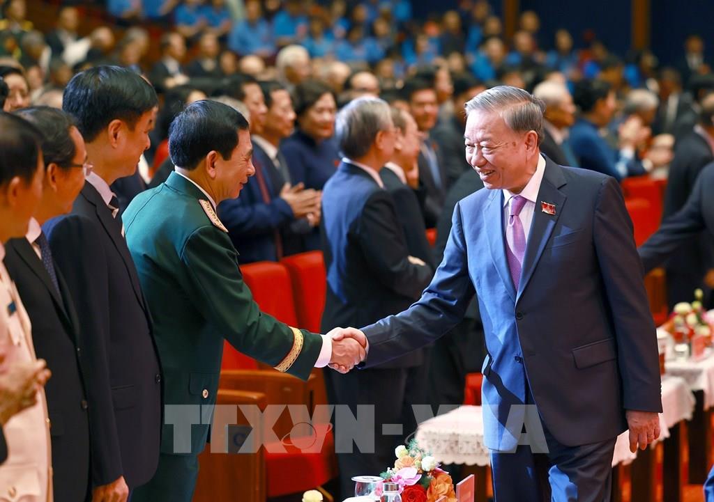 Tổng Bí thư Tô Lâm với các đại biểu tham dự buổi lễ. Ảnh: Thống Nhất - TTXVN