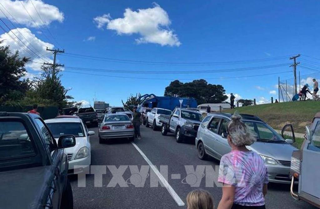 Ngày 5/3/2021, Cơ quan Quản lý Khẩn cấp Quốc gia (NEMA) của New Zealand đã phát đi cảnh báo sóng thần thứ 3 liên tiếp, sau trận động đất có độ lớn 8,0 xảy ra lúc 8 giờ 25 phút cùng ngày (giờ địa phương) tại quần đảo Kermadec, cách Đảo Bắc của New Zealand khoảng 1.100 km về phía Bắc. Trước đó, hai trận động đất có độ lớn 7,1 và 7,4 cũng đã gây ra rung lắc nghiêm trọng trên quần đảo Kermadec và khiến cảnh báo sóng thần được ban bố. Trong ảnh: Người dân sơ tán đến vùng đất cao sau khi cảnh báo sóng thần được ban bố, tại Whangarei, New Zealand, ngày 5/3/2021. Ảnh: THX/ TTXVN