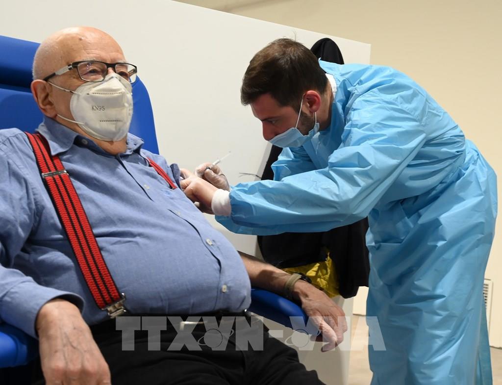 Chủ tịch Ủy ban châu Âu (EC) Ursula von der Leyen ngày 1/3/2021 cho biết Liên minh châu Âu (EU) sẽ cung cấp loại "giấy thông hành xanh" vaccine từ tháng 3 này trong bối cảnh khối đã sẵn sàng tăng cường miễn dịch cộng đồng đối với bệnh viêm đường hô hấp cấp COVID-19. Loại giấy tờ này nhằm cung cấp bằng chứng về việc tiêm vaccine ngừa COVID-19 cũng như các kết quả xét nghiệm virus SARS-CoV-2. Giấy thông hành sẽ cho phép người dân "được di chuyển an toàn trong EU hoặc ngoài EU để làm việc hoặc du lịch". Trong ảnh: Người dân được tiêm vaccine ngừa COVID-19 tại Rome, Italy, ngày 15/2/2021. Ảnh: THX/TTXVN