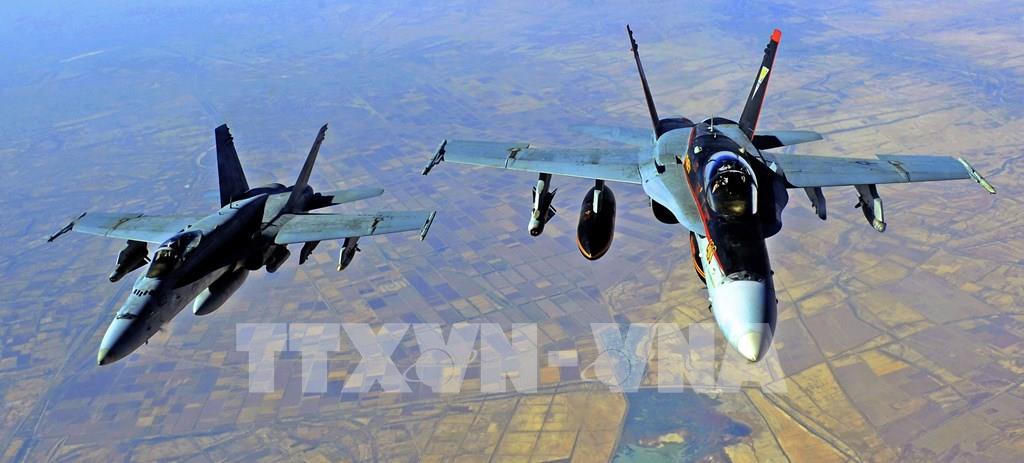 Rạng sáng 26/2/2021, Mỹ đã tiến hành không kích nhằm vào các cơ sở mà Lầu Năm Góc cho là do Iran hậu thuẫn ở miền Đông Syria, giáp giới với Iraq. Tuyên bố của Lầu Năm Góc nêu rõ: "Theo lệnh của Tổng thống Joe Biden, quân đội Mỹ đã tiến hành không kích nhằm đáp trả các vụ tấn công gần đây chống lại quân nhân Mỹ và liên quân tại Iraq, cũng như các mối đe dọa nhằm vào lực lượng này". Trong ảnh (tư liệu): Các máy bay chiến đấu của Mỹ sau khi tiến hành một cuộc không kích. Ảnh: AFP/TTXVN