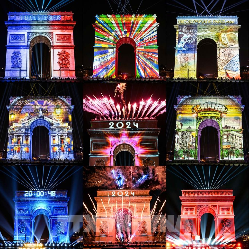 Thế giới đón chào Năm mới 2024 với niềm hy vọng về một nền hòa bình, hạnh phúc và ấm no cho mọi người. Ảnh: Pháo hoa thắp sáng Khải Hoàn Môn ở thủ đô Paris, Pháp thời khắc Giao thừa. AFP/TTXVN