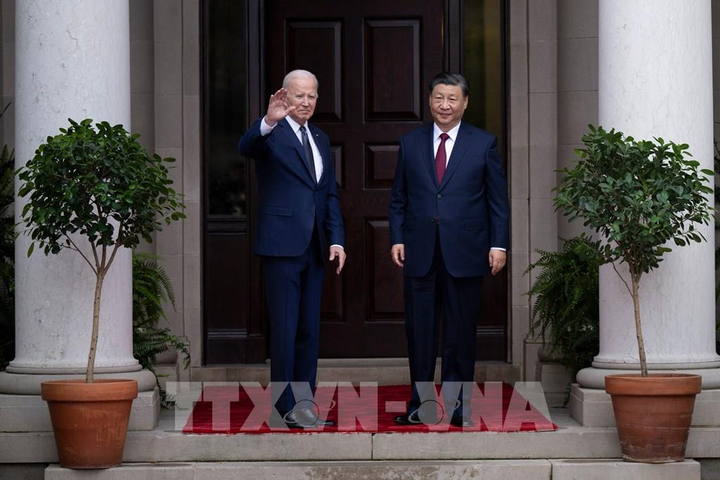 Trong điện mừng nhân kỷ niệm 45 năm thiết lập quan hệ ngoại giao Mỹ-Trung (1/1/1979 -1/1/2024), Chủ tịch Trung Quốc Tập Cận Bình kêu gọi hai nước cùng "thực hiện những hành động thiết thực để thúc đẩy sự phát triển ổn định, lành mạnh và bền vững quan hệ song phương". Ảnh: Chủ tịch Trung Quốc Tập Cận Bình (phải) trong cuộc gặp Tổng thống Mỹ Joe Biden tại California, ngày 15/11/2023. THX/TTXVN