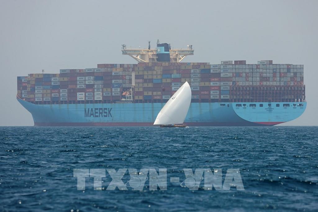 Hãng vận tải hàng hải Maersk của Đan Mạch ngày 31/12/2023 thông báo sẽ tạm dừng vận chuyển hàng qua tuyến đường quan trọng trên Biển Đỏ. Quyết định được đưa ra sau khi Lực lượng Houthi, đang kiểm soát phần lớn Yemen, tăng cường tấn công các tàu thương mại qua Biển Đỏ nhằm phản đối xung đột Hamas - Israel ở Dải Gaza. Ảnh: AFP/TTXVN