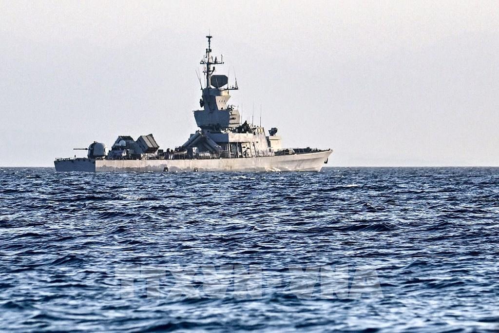 Lực lượng Houthi, đang kiểm soát phần lớn Yemen, liên tiếp tiến hành các vụ tấn công tàu thương mại qua Biển Đỏ nhằm phản đối xung đột Hamas - Israel ở Dải Gaza. Động thái này gây rủi ro cho chuỗi cung ứng và thương mại hàng hóa toàn cầu. Ảnh: Tàu hải quân Israel tuần tra trên Biển Đỏ, ngày 26/12/2023. AFP/TTXVN