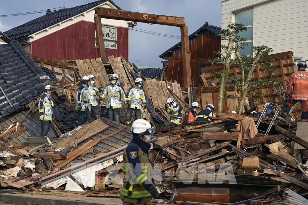 Theo hãng tin Kyodo, nhà chức trách Nhật Bản xác nhận ít nhất 73 người đã thiệt mạng trong trận động đất có độ lớn 7,6 xảy ra chiều 1/1/2024 ở tỉnh Ishikawa, miền Trung nước này. Trận động đất đã gây ra sóng thần và hỏa hoạn, nhiều nhà cửa và đường sá bị hư hại. Chính phủ đã huy động hàng nghìn binh sĩ và lực lượng cứu hộ chạy đua với thời gian để tìm kiếm các nạn nhân và khắc phục thiệt hại (ảnh). Kyodo/TTXVN
