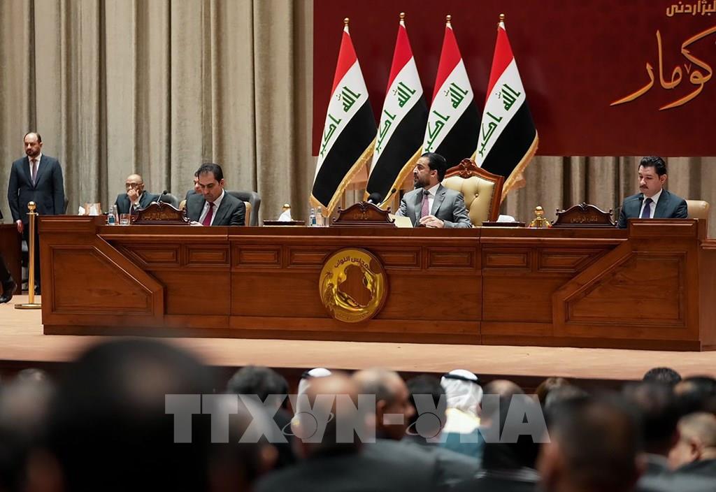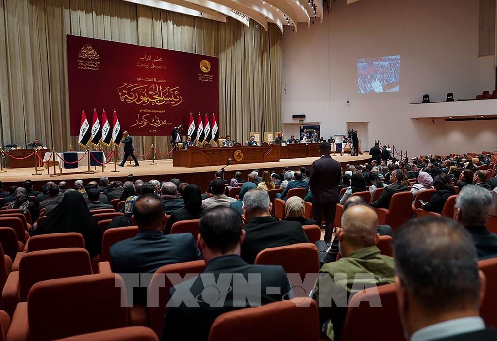 Quốc hội Iraq ngày 13/10/2022 đã bầu chính trị gia người Kurd Abdul Latif Rashid làm Tổng thống, mở đường cho việc thành lập Chính phủ mới và chấm dứt một năm bế tắc chính trị. Ông Rashid sẽ có 15 ngày để mời một thành viên thuộc nhóm đảng lớn nhất trong Quốc hội đứng ra thành lập Chính phủ mới. Trong ảnh: Các nghị sĩ dự phiên họp Quốc hội Iraq tại Baghdad ngày 13/10/2022. Ảnh: THX/ TTXVN