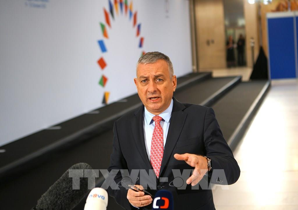 Trong buổi họp báo sau Hội nghị không chính thức Bộ trưởng Năng lượng các quốc gia thành viên Liên minh châu Âu (EU) tại Praha (CH Séc) ngày 12/10/2022, Bộ trưởng Công Thương CH Séc Jozef Sikela thông báo các Bộ trưởng Năng lượng EU đã đạt được thoả thuận về việc mua chung khí đốt trước mùa Hè 2023, tăng cường đoàn kết và tiết kiệm năng lượng, đồng thời nhất trí với kiến nghị cần phải ngăn chặn tác động của giá khí đốt lên giá điện. Ảnh: THX/ TTXVN