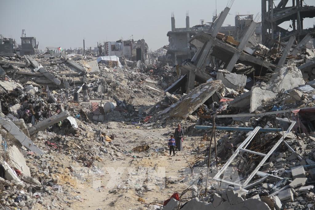 Trong bước tiến quan trọng hướng tới việc tái thiết Dải Gaza, Chương trình Phát triển của Liên hợp quốc (UNDP) cùng Tổ chức xây dựng Arập và quốc tế tại Palestine ngày 10/2/2025 đã ký kết Bản ghi nhớ (MoU) trị giá 80 triệu USD. Đây được xem là thỏa thuận tái thiết đầu tiên kể từ khi lệnh ngừng bắn giữa Israel và Hamas có hiệu lực. Trong ảnh: Cảnh tàn phá do xung đột tại Dải Gaza. Ảnh: THX/TTXVN