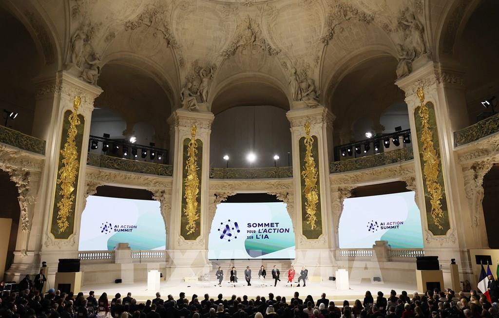 Ngày 11/2/2025, tổng cộng 61 quốc gia đã thông qua tuyên bố chung về nhu cầu trí tuệ nhân tạo (AI) “mở, toàn diện và đạo đức” tại hội nghị thượng đỉnh AI ở Paris, Pháp. Tuy nhiên, Mỹ và Anh đã không ký tuyên bố cuối cùng của hội nghị, với lý do lợi ích quốc gia và lo ngại về quy định. Tuyên bố chung nhấn mạnh các vấn đề liên quan đến AI và năng lượng đã “lần đầu tiên” được giải quyết trong bối cảnh đa phương. Ảnh: THX/TTXVN