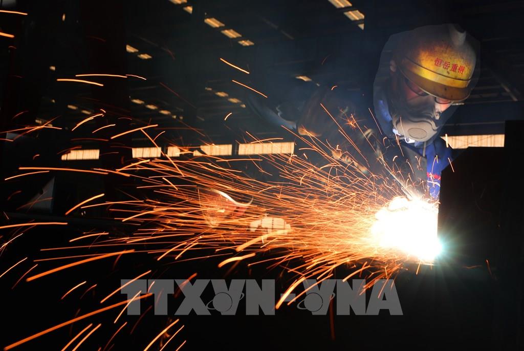 Ngày 10/2/2025, Tổng thống Mỹ Donald Trump đã chính thức ký sắc lệnh áp thuế 25% lên mặt hàng hàng thép và nhôm nhập khẩu vào nước này. Phát biểu tại Phòng Bầu dục khi ký sắc lệnh, ông Trump cũng cho biết sẽ xem xét áp thêm thuế lên ô tô, dược phẩm và chip máy tính. Trong ảnh: Công nhân làm việc tại nhà máy sản xuất thép ở tỉnh Hồ Nam, Trung Quốc. Ảnh: THX/TTXVN