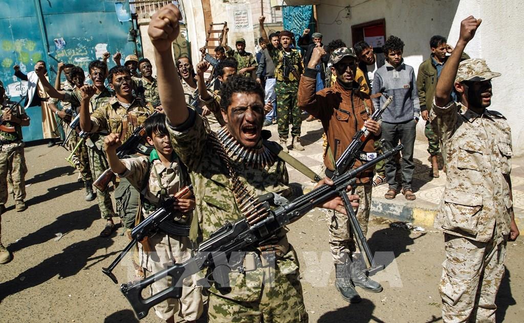 Ngoại trưởng Mỹ Mike Pompeo ngày 10/1/2021 cho biết Mỹ sẽ coi lực lượng Houthi ở Yemen là tổ chức khủng bố. Dự kiến, quyết định này sẽ có hiệu lực vào ngày 19/1 tới. Các nhóm viện trợ nhân đạo cũng như các thành viên của đảng Dân chủ Mỹ cho rằng động thái trên sẽ cản trở những nỗ lực giải quyết điều mà LHQ gọi là cuộc khủng hoảng nhân đạo lớn nhất thế giới. Trong ảnh: Các tay súng Houthi mới được tuyển dụng tại Sanaa, Yemen. Ảnh: AFP/TTXVN