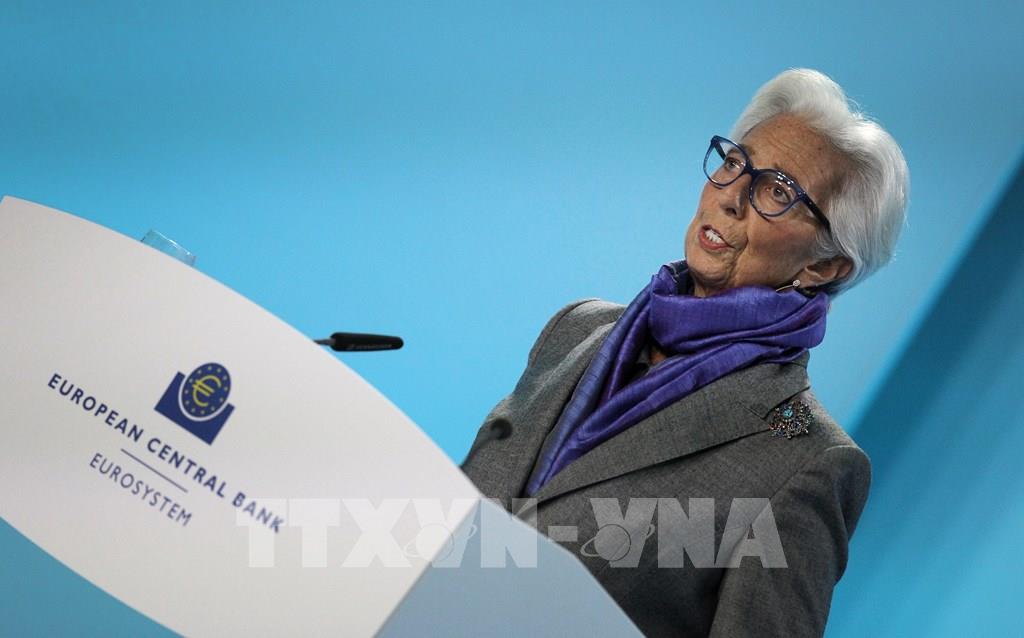 Ngày 15/12/2022, Ngân hàng Trung ương châu Âu (ECB) đã tăng lãi suất lần thứ 4 liên tiếp, thêm 0,5 điểm phần trăm, lên 2,5%. Trong ảnh: Chủ tịch ECB Christine Lagarde phát biểu trong cuộc họp báo ở Frankfurt am Main, Đức. Ảnh: AFP/TTXVN