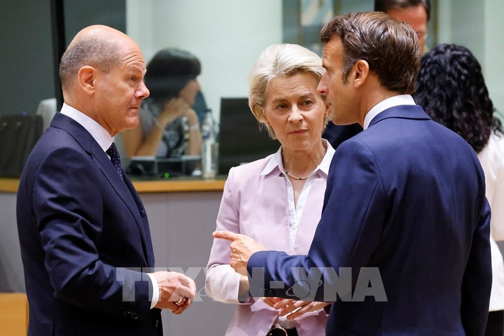 Liên minh châu Âu (EU) ngày 15/12/2022 đã đạt được thỏa thuận cung cấp cho Ukraine khoản tài trợ hơn 19 tỷ USD vào năm tới nhằm giúp nước này duy trì các dịch vụ cơ bản trong bối cảnh nền kinh tế bị chiến tranh tàn phá. Ảnh: Thủ tướng Đức Olaf Scholz (trái), Chủ tịch Uỷ ban châu Âu Ursula von der Leyen (giữa) và Tổng thống Pháp Emmanuel Macron tại cuộc họp của EU ở Brussels (Bỉ). AFP/TTXVN