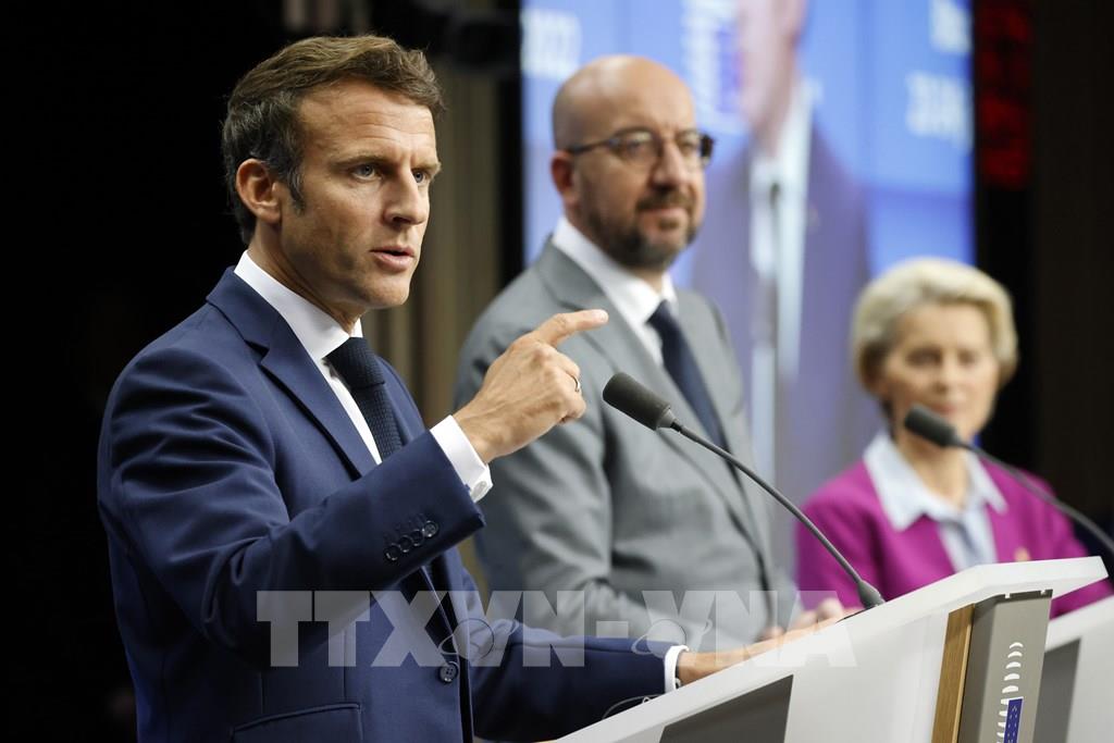 Liên minh châu Âu (EU) ngày 15/12/2022 đã đạt được thỏa thuận cung cấp cho Ukraine khoản tài trợ hơn 19 tỷ USD vào năm tới nhằm giúp nước này duy trì các dịch vụ cơ bản trong bối cảnh nền kinh tế bị chiến tranh tàn phá. Ảnh: Tổng thống Pháp Emmanuel Macron, Chủ tịch Hội đồng châu Âu Charles Michel và Chủ tịch Uỷ ban châu Âu Ursula von der Leyen tại cuộc họp của EU ở Brussels (Bỉ). AFP/TTXVN