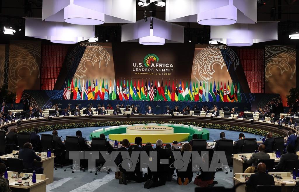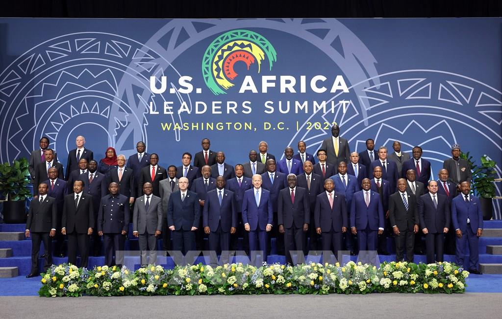 Tổng thống Mỹ Joe Biden (ảnh, giữa, hàng đầu) cam kết đạt được các thỏa thuận thương mại hai chiều trị giá 15 tỷ USD, nhằm thúc đẩy các ưu tiên chính, bao gồm năng lượng bền vững, hệ thống y tế, kinh doanh nông nghiệp, kết nối số, cơ sở hạ tầng và tài chính với các quốc gia châu Phi, tại Hội nghị thượng đỉnh Mỹ-châu Phi ở thủ đô Washington DC., ngày 15/12/2022. AFP/TTXVN